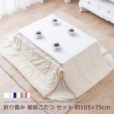 こたつ セット 折り畳み猫脚こたつ+こたつ布団セット 約105×75 こたつ単品+こたつ布団 こたつ掛布団付 リビングテーブル ローテーブル 折りたたみ式 猫足 〔B〕【送料無料】アンティーク エレガント 姫系 ホワイト ピンク