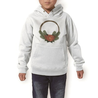 パーカー キッズ ホワイト グレー ブラック デザイン 110 130 150 parker hooded sweatshirt フーディ 白 黒 灰色 子供 男の子 女の子 015605 クリスマス リース ポインセチア