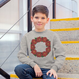 トレーナー キッズ 子供 長袖 ホワイト グレー ブラック デザイン 110 130 150 sweatshirt trainer 白 黒 灰色 裏パイル スウェット スエット 015604 クリスマス リース ポインセチア