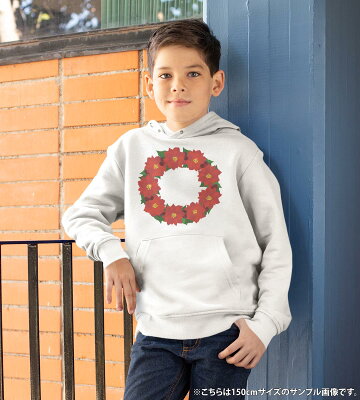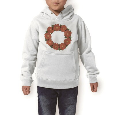パーカー キッズ ホワイト グレー ブラック デザイン 110 130 150 parker hooded sweatshirt フーディ 白 黒 灰色 子供 男の子 女の子 015604 クリスマス リース ポインセチア