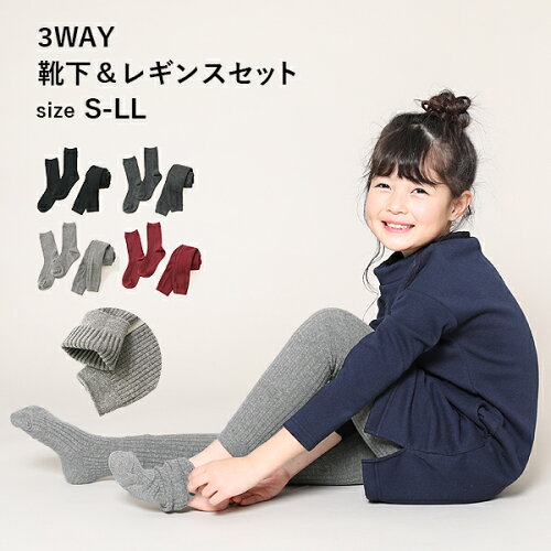 【送料無料】3WAYリブタイツ リブレギンス 女の子 ボトムスL ズボン 子供服 キッズ ジュニア 子供 こども 子ども