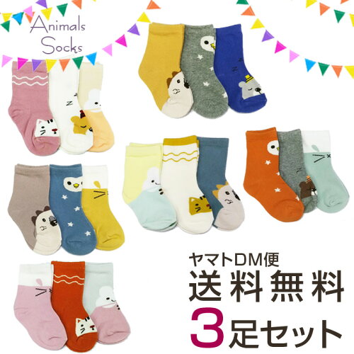 【メール便送料無料】3セットまで 同梱可能 子供 靴下 キッズ 3足セットLサイズ 約13−16cm 動物 アニマルクルー ソックス キッズ 保育園 幼稚園 通園通学靴下 子供服 春夏秋冬 Cyberplugs